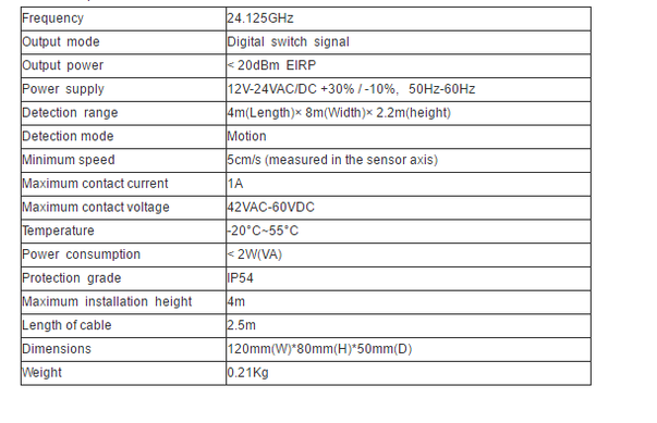 2.All the parameters above are only for reference, detection height is 2.2M.